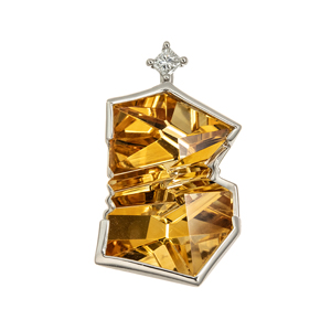 PT950 "ベルント・ムンシュタイナー/カット By フィリップ" シトリン ダイヤ ペンダントトップ CI 6.82ct D 0.05ct