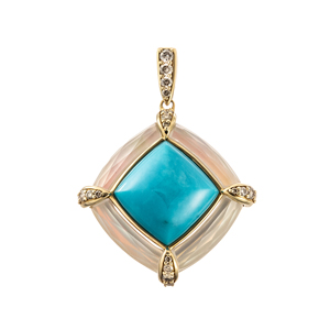 K18YG ターコイズ(スタビライズ) ブラウンダイヤ ロッククリスタル 白蝶貝 天空 ペンダントトップ BRD 0.23ct