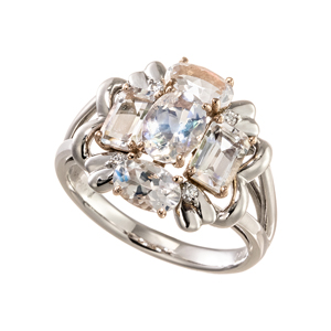 【13号】PT950/K18PG アンデシン/ラブラドライト ダイヤ Elena リング AN/LAB 2.00ct D 0.03ct