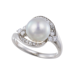 【12号】PT950 ナチュラルブルーカラーアコヤ真珠(凪輝) ダイヤ リング P 約9.0mm D 0.25ct