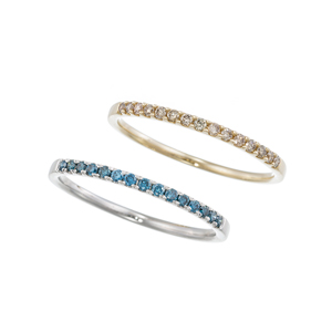 【16.5号】PT950/K18YG ブルーダイヤモンド(トリート) ブラウンダイヤ リング 2点セット BD 0.16ct BRD 0.17ct