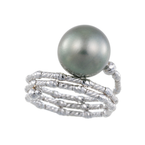 【8-20号】K18WG ナチュラルグレーカラー 黒蝶真珠 オメガフリーリング P 約11.0mm