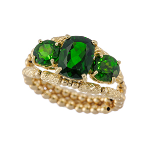 【10-24号】K18YG クロムダイオプサイド&クロスカットシリンダー フリーリング DI 1.80ct 幅:約4.0-9.3mm 総重量:約2.3g
