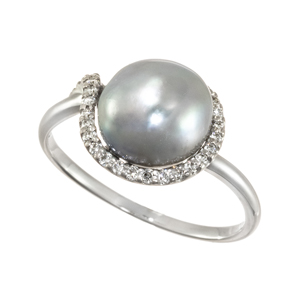 【13号】K18WG アコヤ真珠 ダイヤモンド リング P約8.5㎜ D 0.13ct