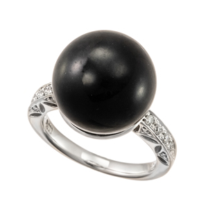 【13.5号】PT900 黒蝶真珠 ダイヤモンド リング P約14.5mm D 0.21ct