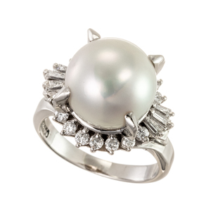 【10号】PT900 白蝶真珠 ダイヤモンド リング P約11.0㎜ D 0.58ct