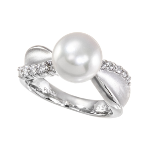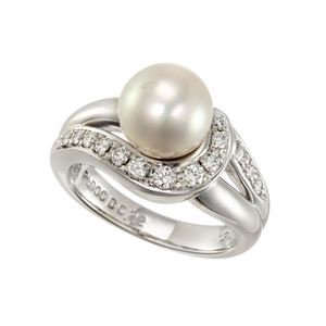【9.5号】PT950 アコヤ真珠 ダイヤ リング P 約9.0mm D 0.06ct