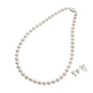 JSM53531: 【11号】SV アコヤ真珠 ネックレス&K18WG アコヤ真珠 ピアス&PT900 アコヤ真珠 ダイヤ リング D0.10ct 3点セット(オーロラ真多麻)285,000円(税込)