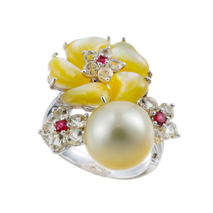 JSM54015: 【14号】パラジウムシルバー950 ナチュラルゴールデン 白蝶真珠 黄蝶貝 トパーズ スピネル ファンタジーフラワー リング P 約11.0mm TO 1.55ct SP 0.10ct39,000円(税込)