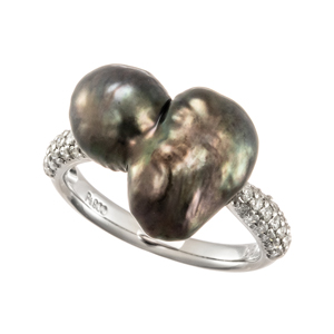 【11号】PT900 黒蝶真珠 ダイヤモンド リング D 0.30ct
