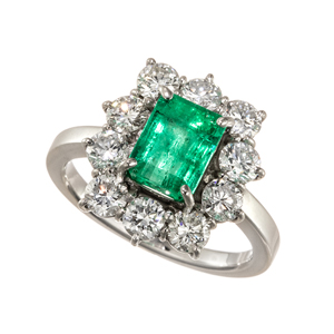 【11.5号】PT900 エメラルド ダイヤモンド リング EM 2.148ct D 1.66ct