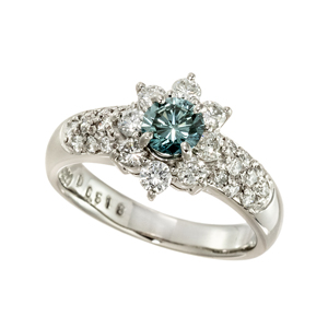 【12.5号】PT900 ブルーダイヤ(トリート) ダイヤモンド リング BD 0.518ct D 0.72ct