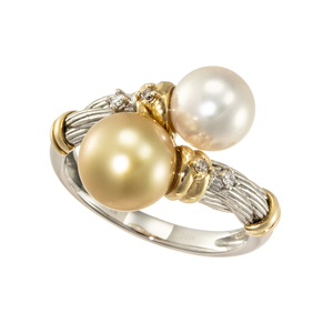 JSM54430: 【13号】PT950/K18YG ナチュラルゴールデン白蝶真珠 & アコヤ真珠 ダイヤ & ブラウンダイヤ リング P 約8.0mm P 約7.5mm D 0.02ct BRD 0.02ct120,000円(税込)