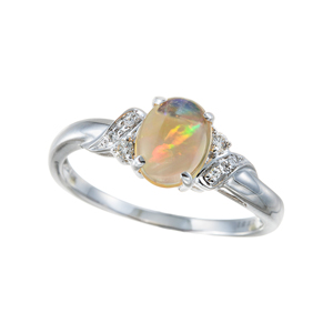 【14.5号】K18WG メキシコオパール ダイヤ リング OP 0.60ct D 0.05ct