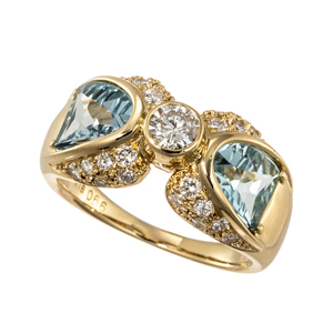 【14号】K18YG ブルートパーズ ダイヤモンド リング D0.66ct