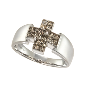 【15.5号】K18WG ブラウンダイヤモンド & ダイヤ ミステリーセッティング リング BRD 約1.42ct D 0.28ct