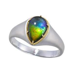【24号】パラジウムシルバー950/K18YG アンモライト(トリプレット) リング