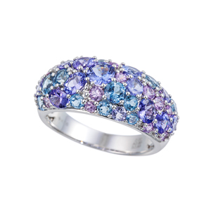 JSM54990: 【15.5号】K18WG タンザナイト サンタマリアアフリカーナ アクアマリン パープルサファイア リング TA 2.00ct AQ 0.85ct PPS 0.65ct