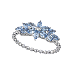 PT950 タンザナイト サンタマリアアフリカーナアクアマリン ダイヤ フルーティー リング