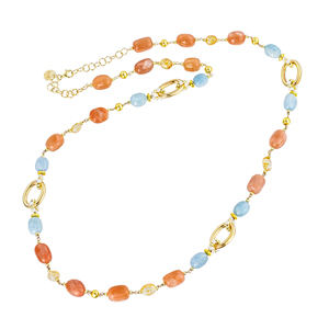 JSM53718: パラジウムシルバー950/K18PG モルガナイト エナメル フラワーガーデン ネックレス MOR 0.25ct GA 0.15ct MOR 0.10ct AQ 0.05ct ZI 0.10ct