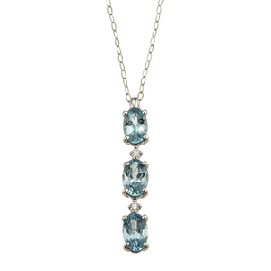 PT950 サンタマリアアフリカーナアクアマリン ダイヤ スリーストーンネックレス AQ 0.80ct D 0.02ct