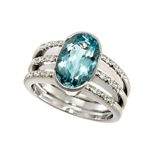 PT950 サンタマリアアフリカーナアクアマリン パヴェ リング AQ 約2.00ct