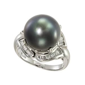 【10号】PT900 黒蝶真珠 ダイヤモンド リング P 約12.0mm D 0.32ct