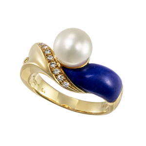 【14号】K18YG アコヤ真珠 ラピスラズリ ダイヤモンド リング P 約8.0mm D 0.09ct