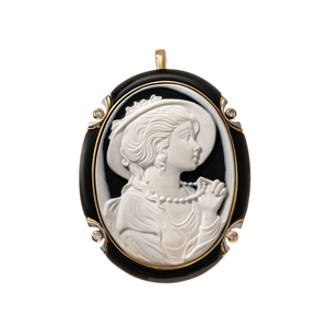 K18YG/PT900 メノウカメオ カルセドニー ダイヤモンド ペンダントトップ/ブローチ D 0.08ct