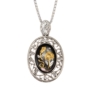 PT900/PT850 黒蝶貝 ダイヤモンド ネックレス D 0.06ct