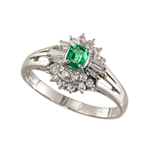 【16.5号】PT950 エメラルド & ダイヤモンド リング EM 0.50ct D 0.25ct