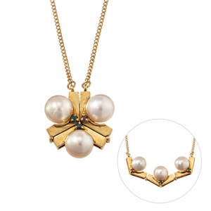K18YG アコヤパール エメラルド ルビー サファイア ネックレス P約6.5㎜
