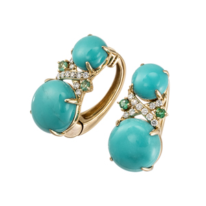 JSM53577: K18YG スリーピングビューティーターコイズ(スタビライズ) ダイヤ エメラルド クラシックフュージョン ピアリング TQ 5.00ct D 0.10ct EM 0.06ct