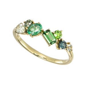 【19.5号】K18GG ザンビア産エメラルド ツァボライト ウラル産デマントイドガーネット エバーグリーン リング EM 0.28ct TS 0.20ct DTG 0.10ct GA 0.10ct CG 0.10ct GS 0.08ct KO 0.05ct