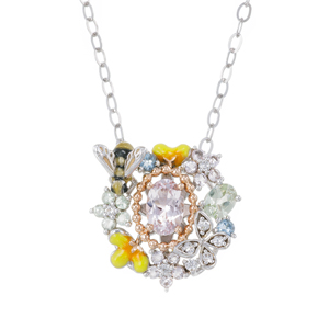 JSM53718: パラジウムシルバー950/K18PG モルガナイト エナメル フラワーガーデン ネックレス MOR 0.25ct GA 0.15ct MOR 0.10ct AQ 0.05ct ZI 0.10ct56,000円(税込)