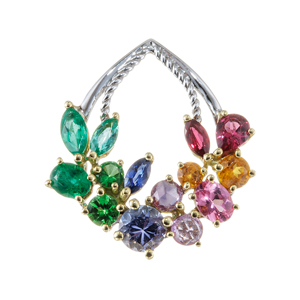JSM50933: K18YG グリーントルマリン バイカラートルマリン ピンクトルマリン マルチカラーサファイア タンザナイト ガーネット トパーズ ダイヤモンド ペンダントトップ/ブローチ824,000円(税込)