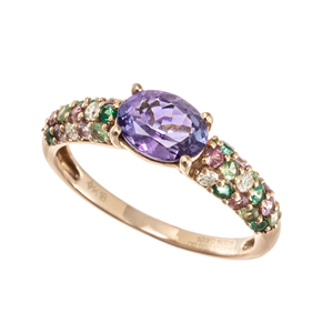 【11.5号】PT900/K18YG アメシスト ピンクサファイア ブルーサファイア タンザナイト ガーネット ダイヤ リング