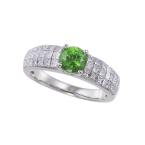 【13号】PT950 デマントイドガーネット & ダイヤモンド ミステリーセッティング リング DTG 0.88ct D 約0.94ct