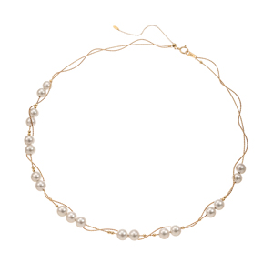 K18YG アコヤ真珠(オーロラ花珠) スパイラル オメガステーションネックレス P 約6.0mm 全長 約45cm