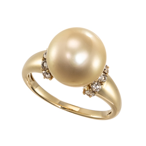 【13号】K18GG ナチュラルゴールデン 白蝶真珠 ダイヤ リング P 約10.0mm D 0.04ct