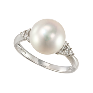 【9.5号】PT900 アコヤ真珠 ダイヤモンド リング P 約8.0mm D0.22ct