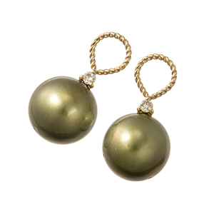 K18YG 黒蝶真珠ピスタチオカラー(トリート) ダイヤ チャーム P 約11.0mm D 0.06ct