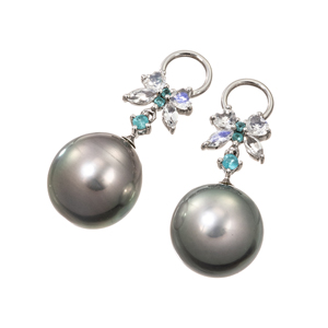 K18WG 黒蝶真珠 ブルームーンストーン パライバトルマリン チャーム P 約11.0mm MO 0.52ct PRT 0.12ct