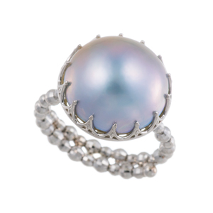 PT900 アバロンパール 白蝶ケシパール サファイア リング P 11.0×7.0mm P 8.5×8.5mm SA 0.14ct