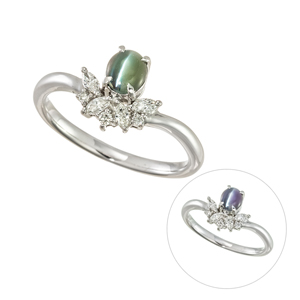 【18号】K18WG アレキサンドライトキャッツアイ ダイヤモンド リング AL 0.760ct D 0.20ct