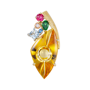 K18YG/PG/PT950 ムンシュタイナーカット シトリン マルチカラーストーン ピンクダイヤ ペンダントトップ CI 6.55ct AQ 0.17ct TS 0.17ct RB 0.15ct PD 0.02ct HA 0.01ct