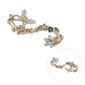 【20号】K18PG/YG/PT950 マルチカラーストーン & ダイヤモンド & イエローダイヤ フラワーガーデン リバーシブルリング TS 約0.50ct MO 約0.30ct PS 約0.30ct D 0.25ct SA 約0.15ct RB 約0.08ct IBS 約0.08ct T 約0.07ct CB 約0.06ct 約AM 0.04ct MO 約0.03ct YD 約0.01ct