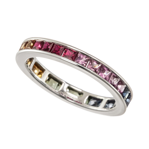 【12号】K18WG ファンシーカラーサファイア & ルビー フルエタニティリング SA 約1.62ct RB 約0.25ct