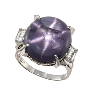 【19号】PT900 非加熱スターサファイア ダイヤモンド リング SA 30.04ct D 0.70ct