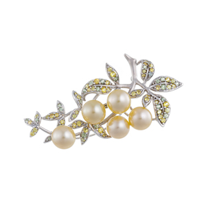 パラジウムシルバー950 南洋パール & イエローサファイア & グリーンサファイア ブローチ P 約9mm YS 1.36ct GS 0.68ct